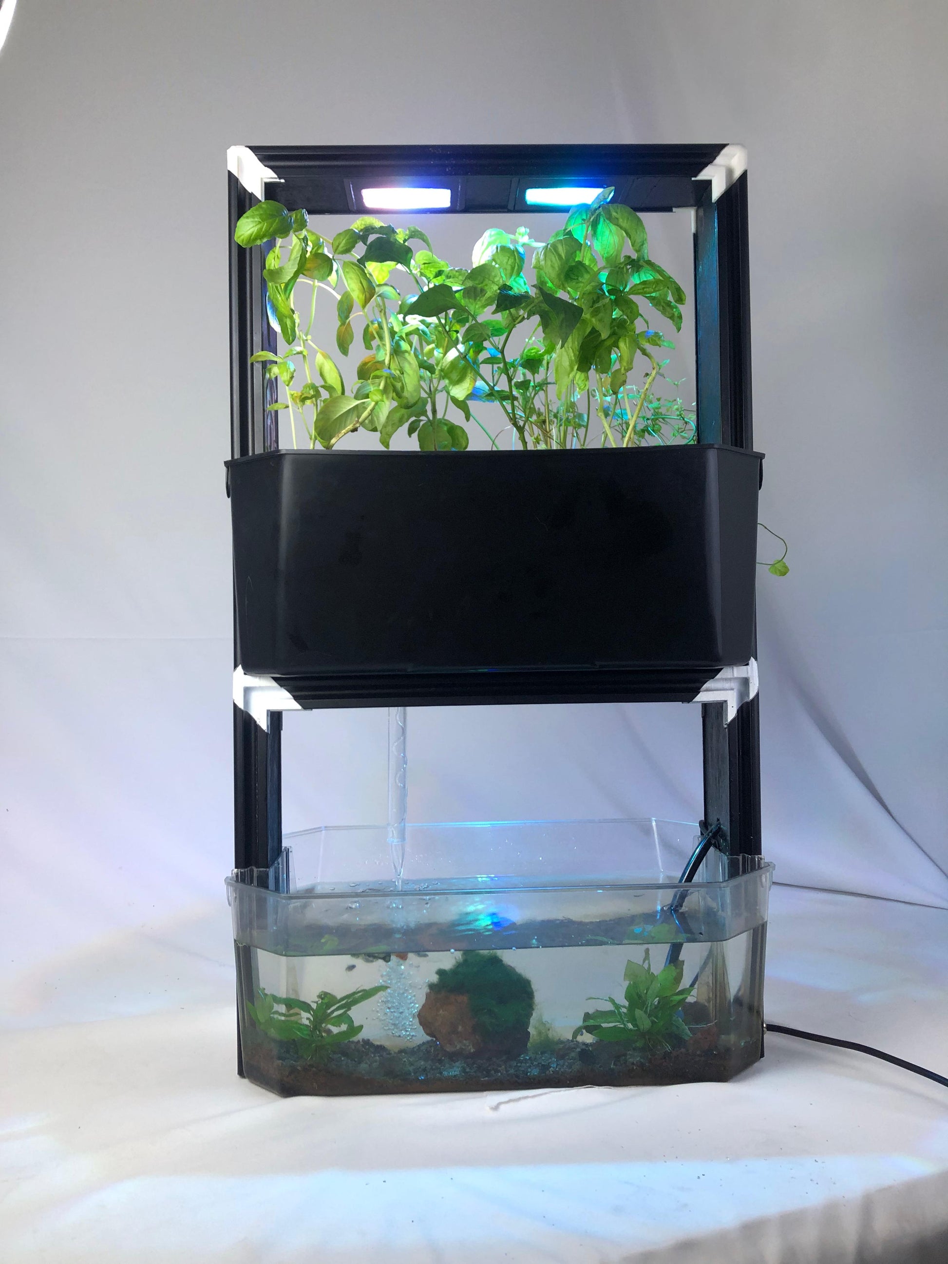 Elevate any space, from your desk to your kitchen, with the Aqwa Frame, a stylish desktop aquaponic farm designed to seamlessly blend nature with modern aesthetics. Crafted with sleek aluminum and stylish wooden frames, this innovative masterpiece not only adds a touch of elegance to your surroundings but also brings the soothing presence of nature indoors.